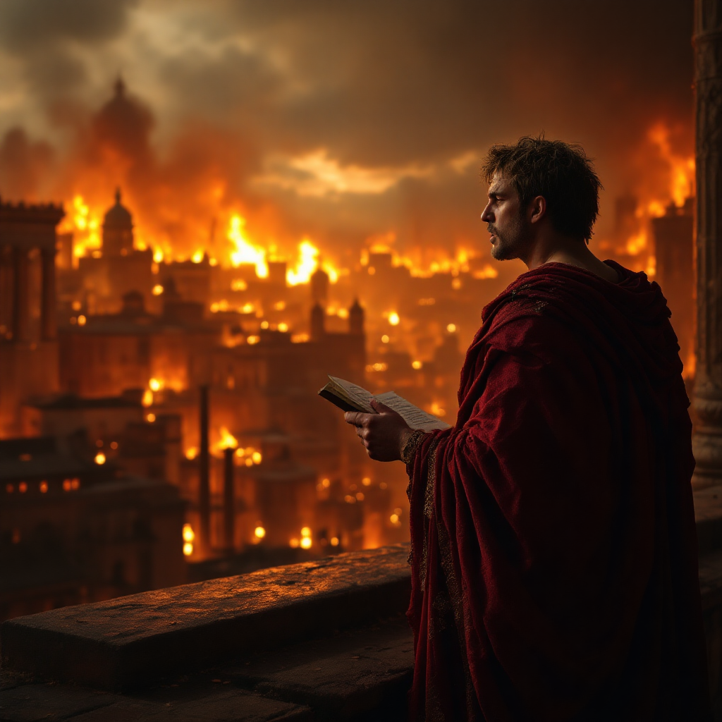 로마 황제 네로는 역사상 가장 논란이 많은 인물 중 하나예요. 특히 64년 로마 대화재 당시 네로가 화재를 바라보며 시를 낭송했다는 이야기는 오늘날까지도 널리 알려져 있답니다. 하지만 이 이야기의 진실은 무엇일까요? 네로는 정말로 로마가 불타는 것을 보며 예술에만 몰두했던 잔혹한 폭군이었을까요?